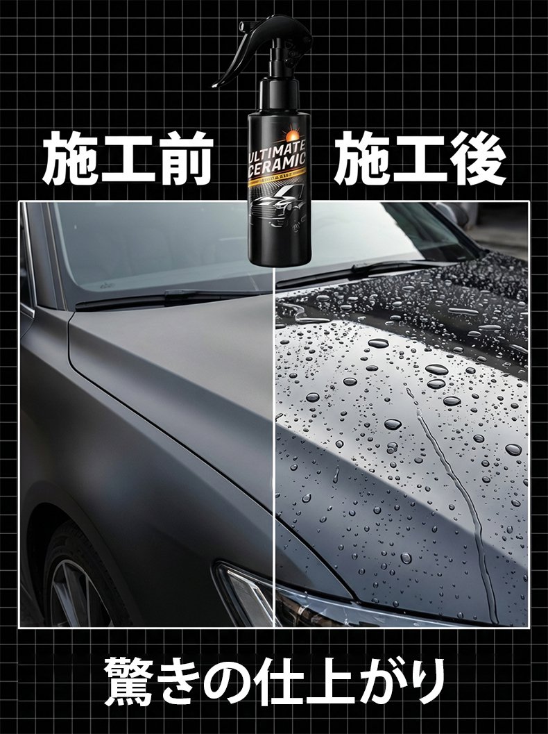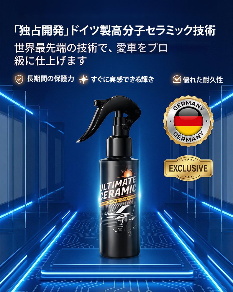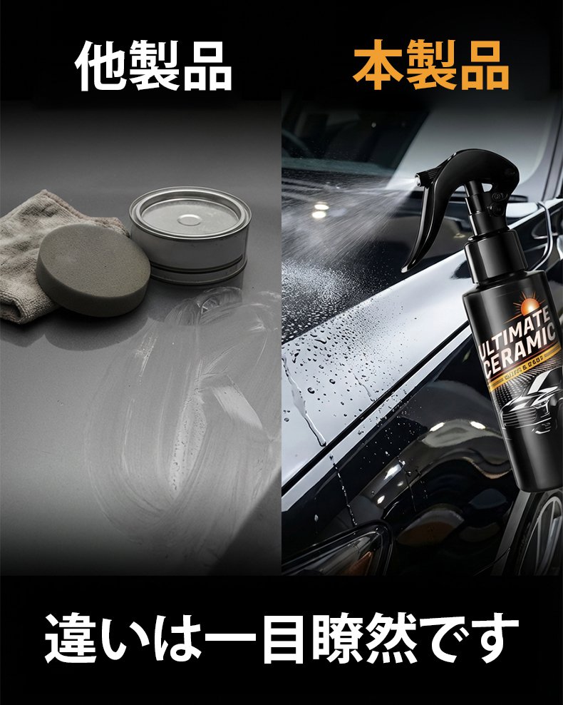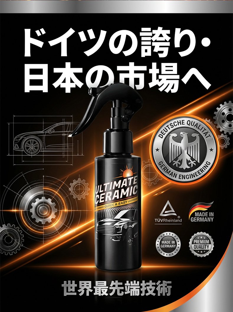 全く技術は必要ありません。傷だらけの古い車に『スプレーして拭くだけ』で、ドイツのナノテクノロジーが瞬時に新車のような鏡面光沢を与えます!