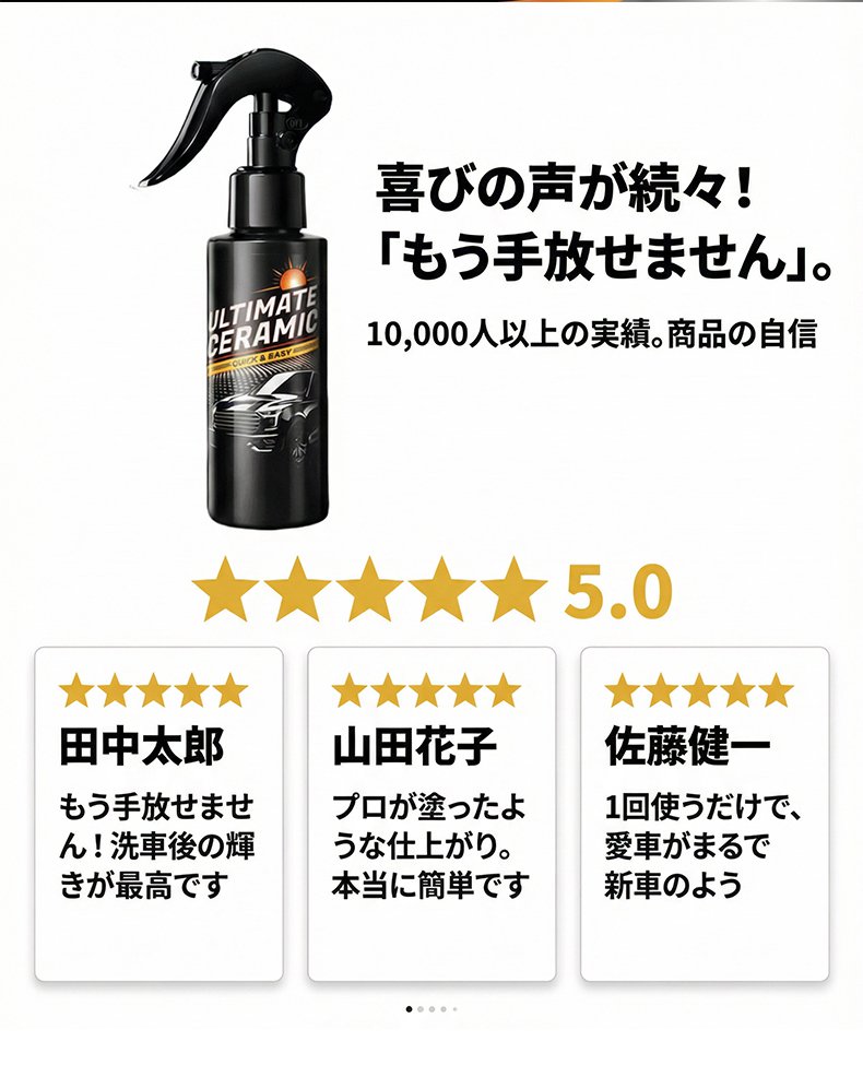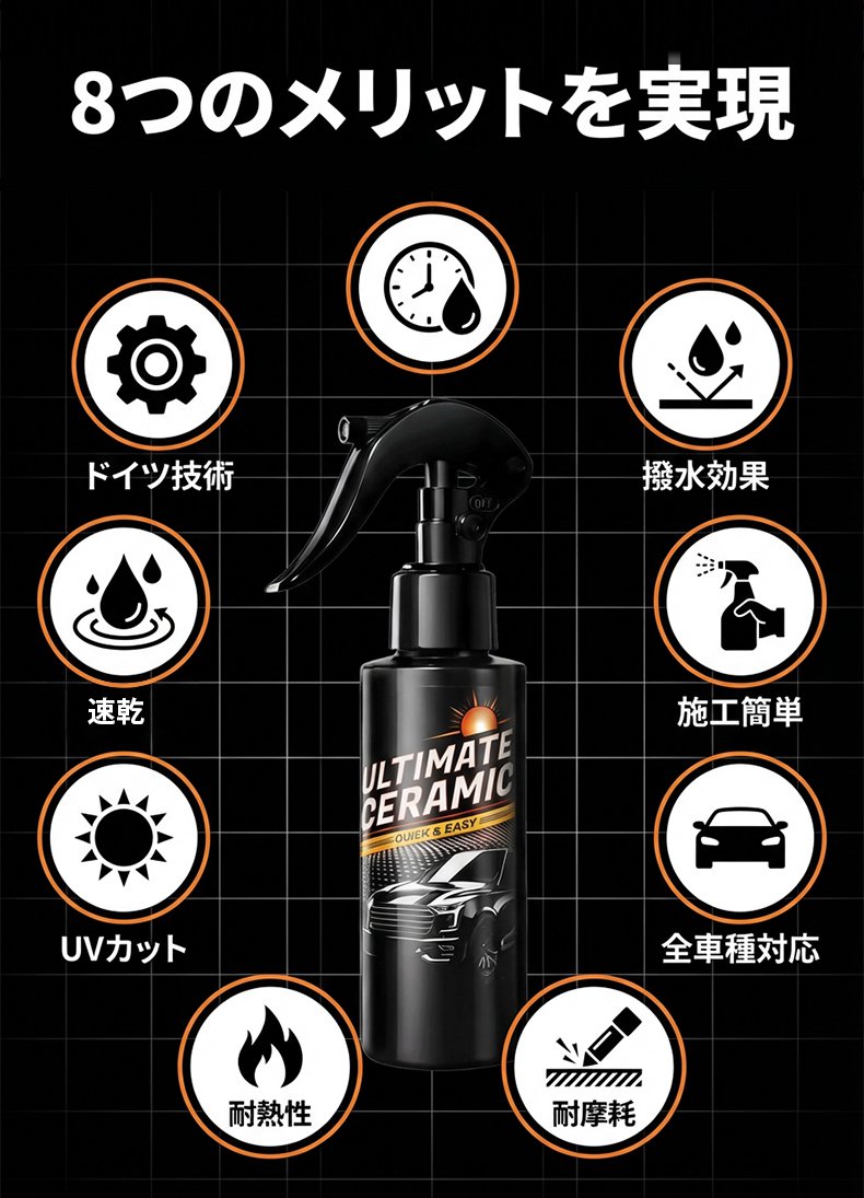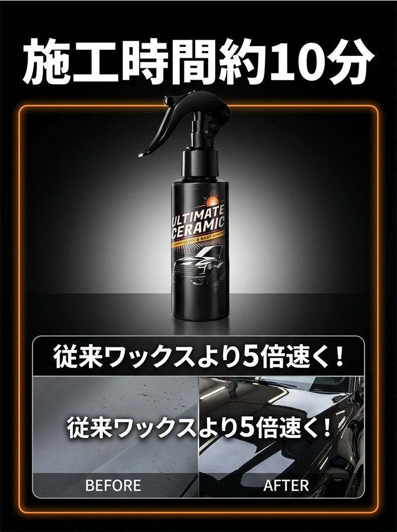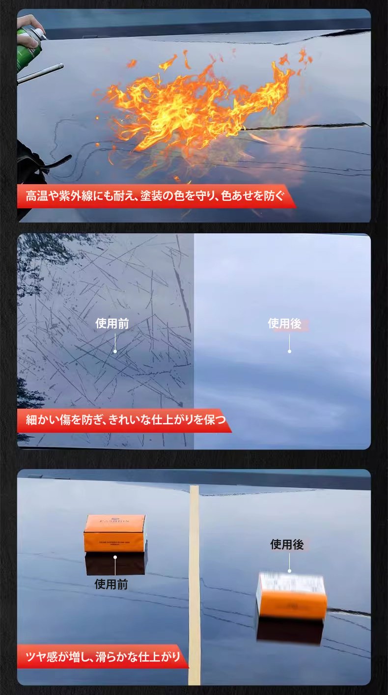 全く技術は必要ありません。傷だらけの古い車に『スプレーして拭くだけ』で、ドイツのナノテクノロジーが瞬時に新車のような鏡面光沢を与えます!